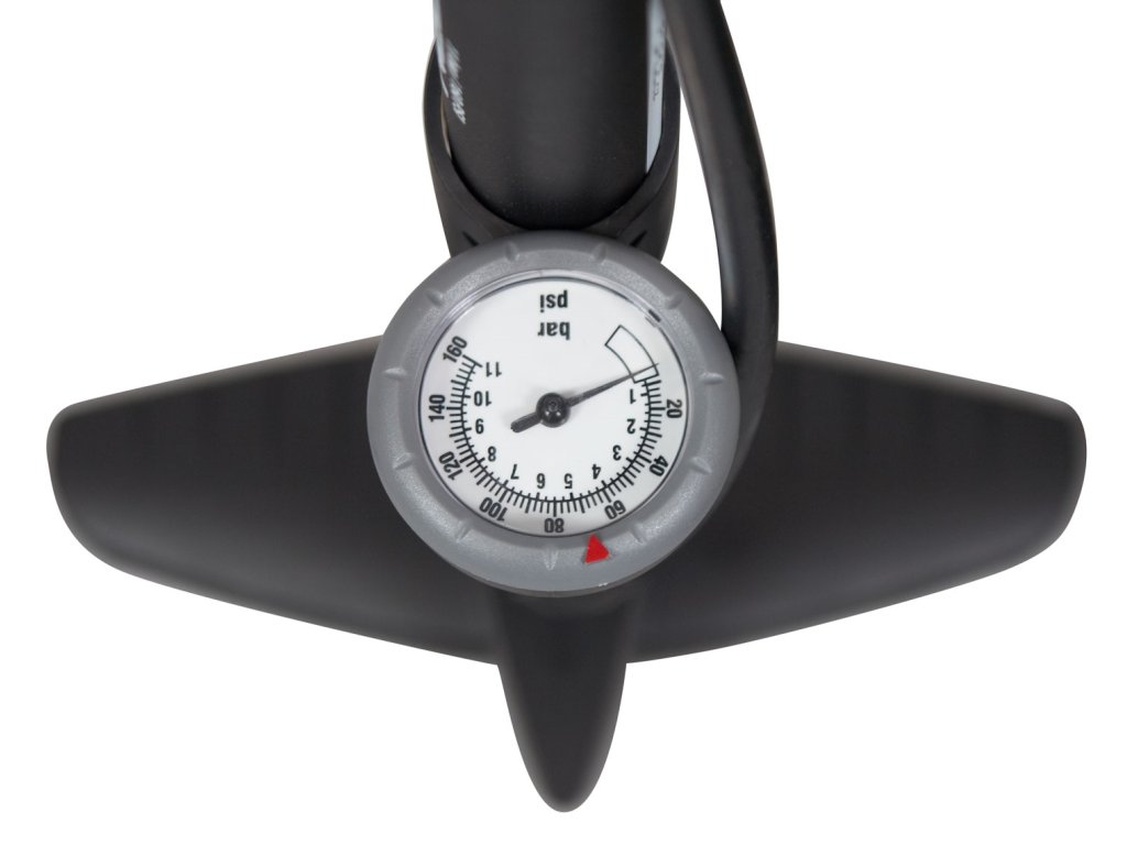 Aj napriek svojej ľahkosti disponuje dostatočným výkonom až 11 bar a prehľadným manometrom. Univerzálna obojstranná hlavica umožňuje hustenie všetkých typov cyklistických ventilov bez nutnosti použitia adaptérov.