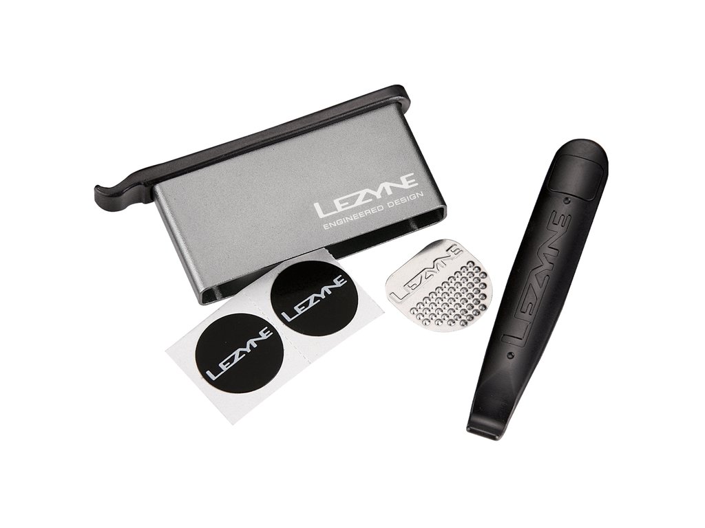 ⭐ LEZYNE LEVER KIT – Dve veci v jednom! Súprava montpák a samolepiacich záplat v elegantnom hliníkovom puzdre.